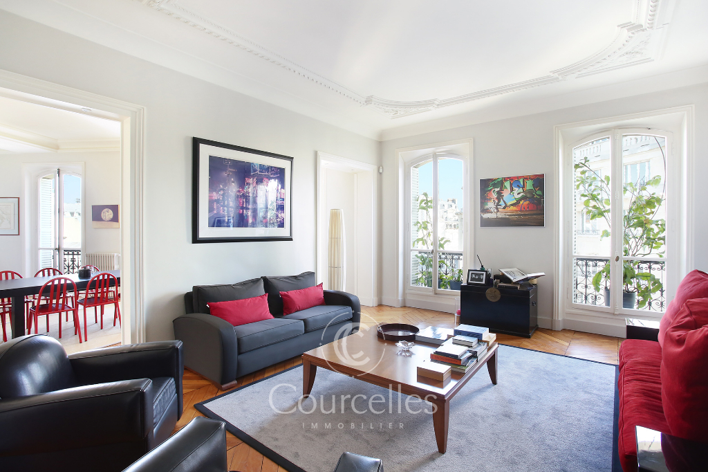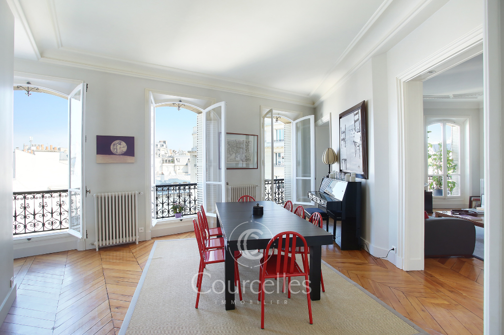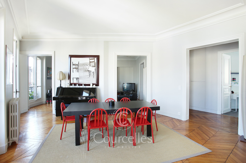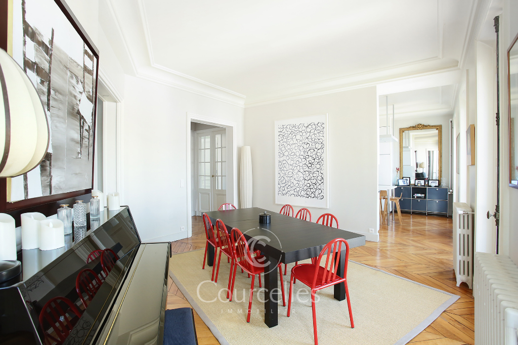 Paris XVII - Parc Monceau - Prony. Magnifique appartement meublé de 165m2 situé rue de Prony à proximité immédiate du Parc Monceau, dans un bel immeuble haussmannien, parties communes en très bon état avec gardienne, l'appartement a été intégralement rénové. II se compose d'une belle entrée, d'un salon, d'une salle à manger, d'une cuisine dinatoire entièrement équipée, de quatre belles chambres, dont deux suites parentale avec salle de bain et dressing, une salle d'eau, trois toilettes dont un séparé. Il y a de nombreux rangement, très bien agencé. L'appartement bénéficie de très beaux volumes (très belle hauteur sous plafond) et d'une vue dégagée sans vis-à-vis. Dans un environnement très calme, proximité des écoles EIB monceau, Fénelon Sainte-Marie et des stations Monceau (ligne 2) et Malesherbes (ligne 3). - Type de bail : Bail Code Civil uniquement (résidence secondaire ou bail société) Honoraires : 10 % du loyer annuel hors charges + TVA (20 %)
