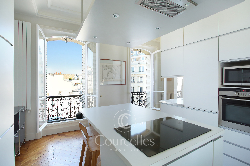 Paris XVII - Parc Monceau - Prony. Magnifique appartement meublé de 165m2 situé rue de Prony à proximité immédiate du Parc Monceau, dans un bel immeuble haussmannien, parties communes en très bon état avec gardienne, l'appartement a été intégralement rénové. II se compose d'une belle entrée, d'un salon, d'une salle à manger, d'une cuisine dinatoire entièrement équipée, de quatre belles chambres, dont deux suites parentale avec salle de bain et dressing, une salle d'eau, trois toilettes dont un séparé. Il y a de nombreux rangement, très bien agencé. L'appartement bénéficie de très beaux volumes (très belle hauteur sous plafond) et d'une vue dégagée sans vis-à-vis. Dans un environnement très calme, proximité des écoles EIB monceau, Fénelon Sainte-Marie et des stations Monceau (ligne 2) et Malesherbes (ligne 3). - Type de bail : Bail Code Civil uniquement (résidence secondaire ou bail société) Honoraires : 10 % du loyer annuel hors charges + TVA (20 %)